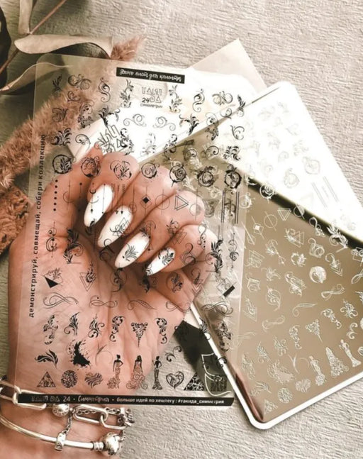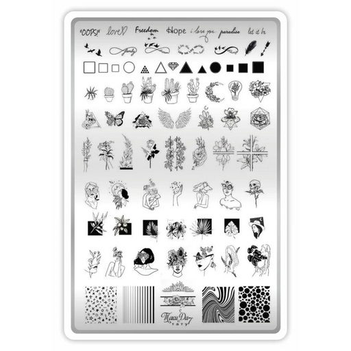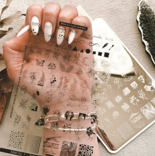 Taki DaPlattengröße: 10x15 cm, Material: Klassischer glänzender Metall. NEU! Im Set enthalten ist ein DEMO-BLATT, eine durchsichtige Schablone zum Anprobi...